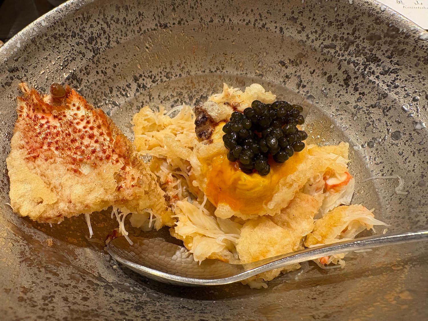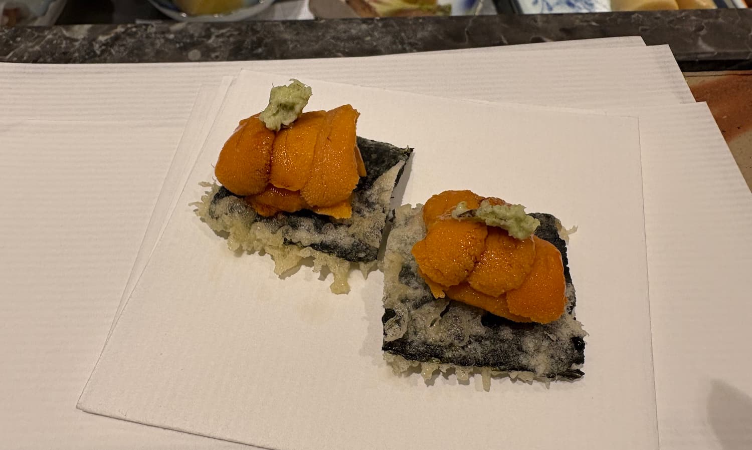 The tempura was great especially the urchin and shrimp head… professional services and it was a pleasant tempura experience. We will definitely recommend Tempura Ginza Onodera to friends and will come back again.