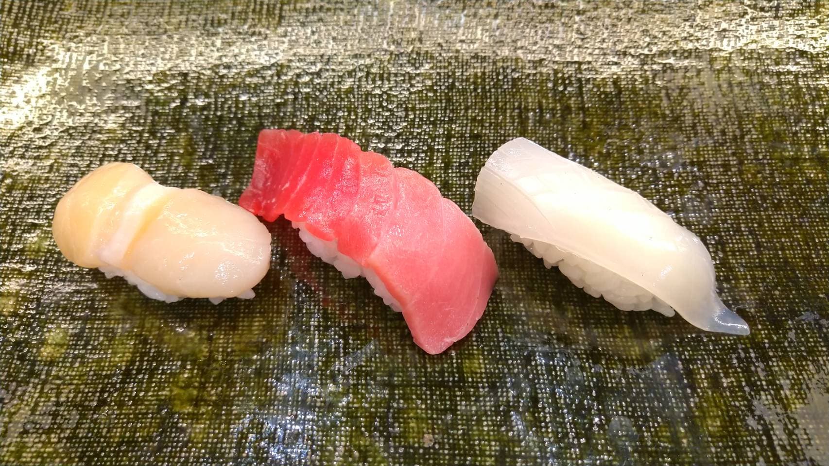 Omakase course including 16 pieces of chef-selected nigiri, a salad, and a soup.